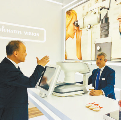 醫(yī)療器械及醫(yī)藥保健展區(qū),一家美國企業(yè)工作人員在介紹眼部檢測儀器。記者 黃 超攝