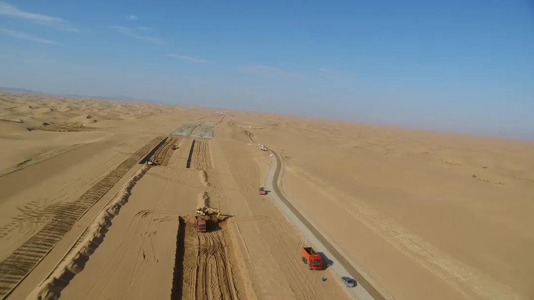 然而,施工現場白天溫度高,水分蒸發快,如果不采取保濕措施,壓好的路基含水率很快就大打折扣。為此,項目團隊繼續攻關,嘗試邊碾壓邊覆蓋土工布的方法,并及時做好防風封層措施,達到了鎖水保濕的作用?!?8公里的路基,相較常規的灑水法施工,我們節約了將近150多萬立方米用水量,相當于當地1萬畝地一年的灌溉用水量。”王盛興介紹道。