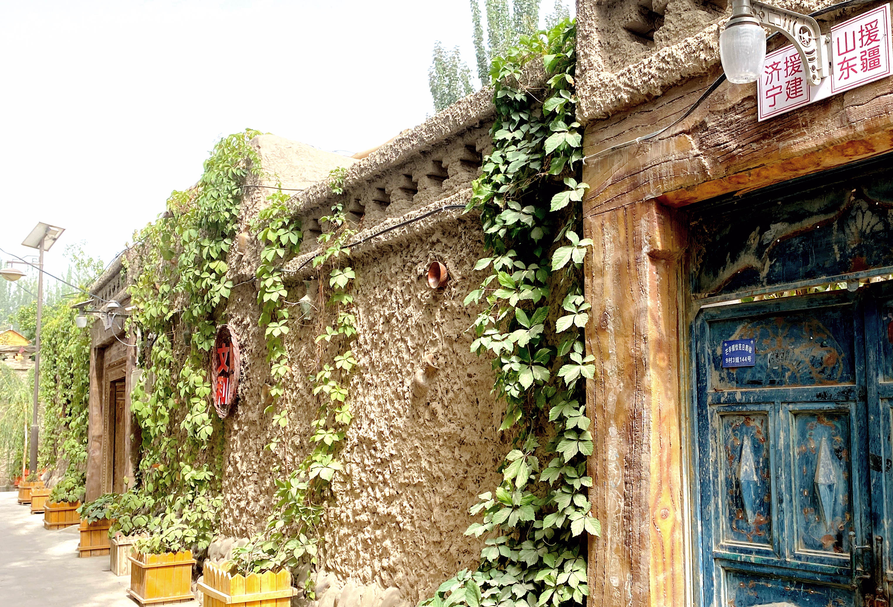 英吉沙土陶被稱為“泥巴藝術”,當地居民也多以制陶營生。走進村口,一座座頗具“土味”的房屋別具一格,外墻用黃土制泥糊成,同時嵌以土陶做點綴,別具特色。