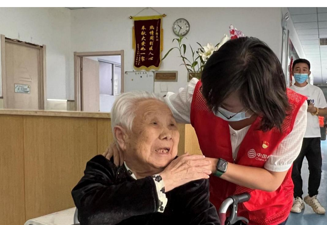 在江蘇南京江北新區泰山街道泰山養老院,中國移動志愿者來看望在這里頤養天年的老人,并為他們送上了紅歌、民族舞等精彩節目,還為老人打掃衛生、按摩,陪伴他們度過愉快一天。