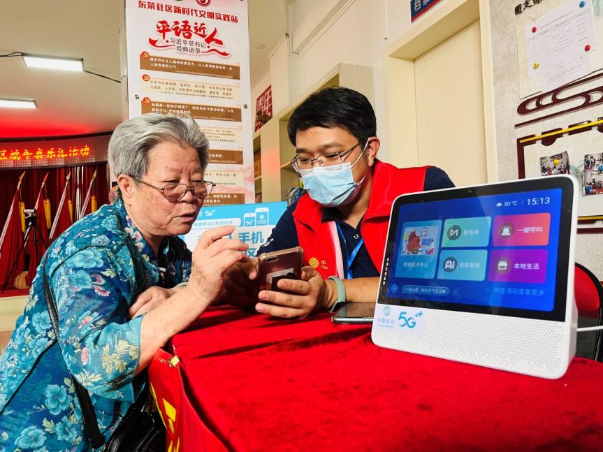 在福建廈門,中國移動福建公司志愿者走進廈門市湖里區東榮社區,為老人解決智能手機使用過程中遇到的各類“疑難雜癥”,宣傳網購和電子支付過程中常見的網絡詐騙手段及防范技巧,以數智服務為社區老人安享晚年保駕護航。