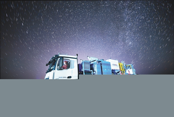 9月1日23時(shí)54分,昆侖山腳下的海油固井特種車剛完成作業(yè),點(diǎn)點(diǎn)繁星升起。
