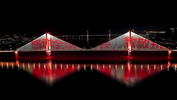 1月27日晚上6點,跟往常一樣,溫瑞裹緊大衣戴好口罩去給大橋拍照,還沒走到地方,就發(fā)現(xiàn)二橋上的燈光字樣變了。原先的燈光效果是風景畫,可現(xiàn)在“武漢加油”4個簡簡單單的大字,矗立在2公里長,100米高的斜拉橋繩索上,火紅的燈光把江面打紅了,也照亮著江城的夜空。從那天開始,橋上的燈光輪番顯示著“中國必勝”“武漢必勝”“武漢加油”“感謝全國人民”“ 致敬抗疫英雄”等字樣。他心里有一種感覺,覺得自己守護的不僅僅是燈光,更是一種希望和精神,于是巡查的時候不自覺地會更仔細,檢修完了也會確認再三,希望這些凝聚人心的話語能完整地呈現(xiàn)在每一個望向大橋的武漢市民眼中。