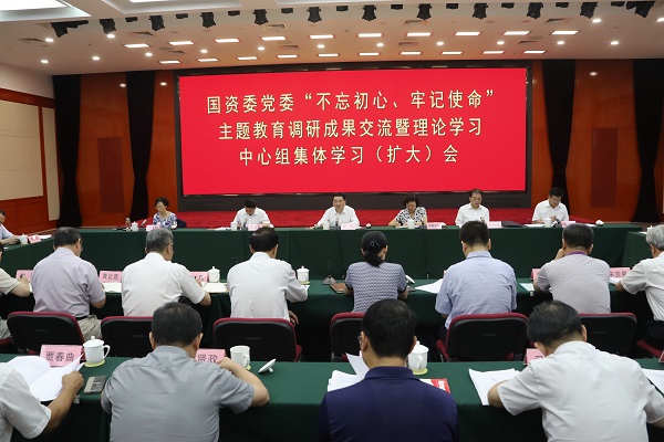 7月30日,國資委黨委召開“不忘初心、牢記使命”主題教育調研成果交流暨理論學習中心組集體學習(擴大)會。國資委黨委書記、主任郝鵬主持并帶頭交流調研成果。他強調,要深入學習貫徹習近平新時代中國特色社會主義思想,貫徹落實習近平總書記關于國資國企改革發展和黨的建設重要論述,把學習教育、調查研究、檢視問題、整改落實貫穿“不忘初心、牢記使命”主題教育全過程,堅持通過調查研究檢視問題、破解難題,切實把調研成果轉化為解決問題、推動工作的有效措施和具體行動。國資委黨委成員作交流發言,國資委副部長級干部出席,中央第二十一指導組副組長諸葛彩華及有關成員到會指導。