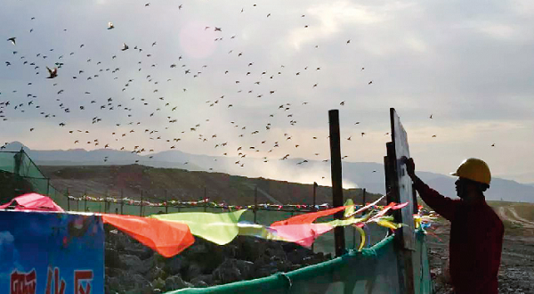 2018年6月25日,為了給粉紅椋鳥營造更加安全的繁殖環境,中油(新疆)石油工程有限公司圍繞粉紅椋鳥繁殖區域安裝了約400米保護圍網,并在遠離繁殖區設立了野生動物警示牌和禁鳴喇叭標識。這項總投資4.8億元的道路工程,第三次為粉紅椋鳥停工。人與自然和諧共處,堅持可持續發展,是央企義不容辭的社會責任。