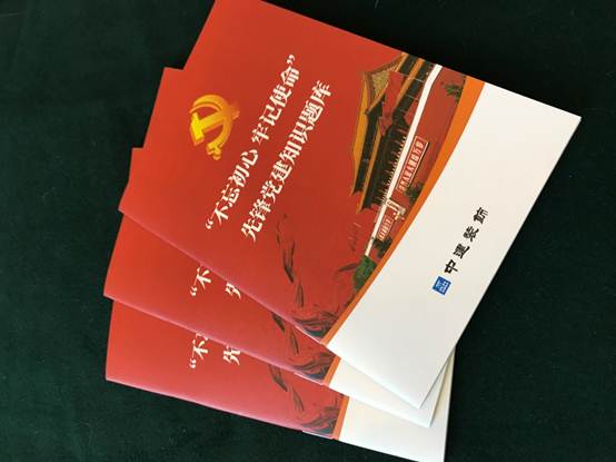 人手一本先鋒黨建題庫口袋書、深刻體會“不忘初心、牢記使命”的內涵、記住共產黨的歷史上的重要事件,這是近一個月中建裝飾員工的休閑新常態。自6月初開展主題教育以來,該集團黨委組織編印了“不忘初心、牢記使命”先鋒黨建知識題庫,希望所有的黨員干部通過深入學習,將意識上的先進性轉化成為行動上的模范性,人人敢當先鋒,人人勇站C位,學以致用,用有所成,把學習成效體現到增強黨性、提高能力、改進作風、推動工作上來。