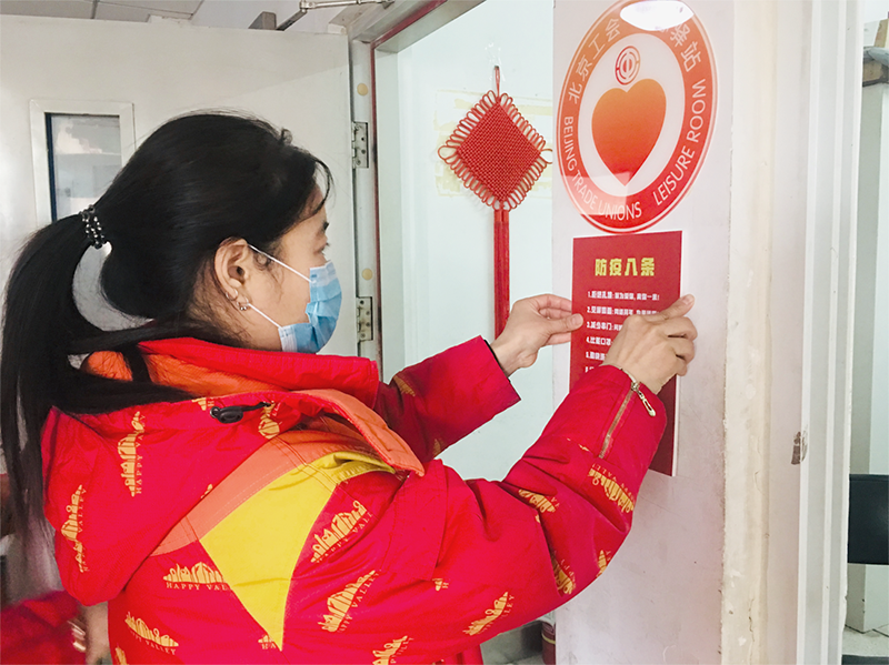 華僑城集團旗下歡樂谷旅游景區(qū)員工正在辦公區(qū)張貼疫情防控宣傳標語