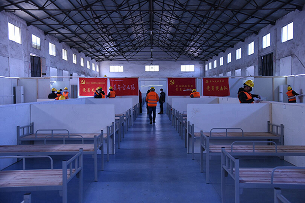 中鐵十一局、中鐵十四局搶建武漢客廳“方艙醫(yī)院”。黃品青 攝