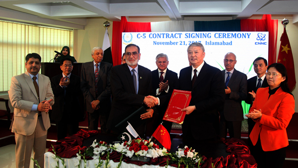 國家名片再次閃亮“一帶一路”。巴基斯坦當(dāng)?shù)貢r間11月21日,中核集團(tuán)董事長王壽君與巴基斯坦原子能委員會主席穆罕默德·納伊姆簽署恰希瑪核電5號機(jī)組(簡稱C-5項目)商務(wù)合同。按照約定,中核集團(tuán)將以華龍一號技術(shù)在巴基斯坦恰希瑪建造1臺百萬千瓦級核電機(jī)組。這是我國華龍一號成功“走出去”的第3臺核電機(jī)組,是我國向巴基斯坦出口的第7臺核電機(jī)組。這是今年中國核電產(chǎn)業(yè)發(fā)展中的重大喜訊。