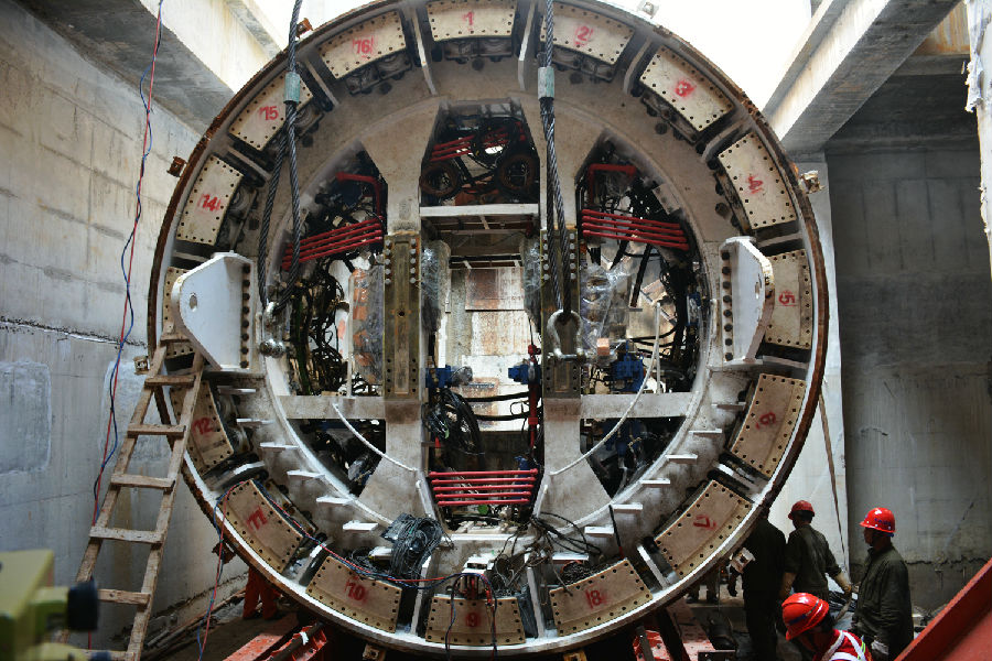 鞠義成分析說,“數十米深的江底勘探,精度難以保證,勘探的卵石尺寸大小很可能超出預期。”項目部決定進入盾構機最前端的刀盤處一探究竟?!岸軜嫏C刀盤切削的卵石塊都要經過格柵才能排出,就好比我們常見的過濾網。”鞠義成比喻說,“而網格直徑大小不超過10厘米,很明顯卵石已經超限,將濾網堵塞,造成排泥不暢,掘進緩慢。”找到了癥結后,項目部立即改造,將矩形格柵孔徑從10厘米擴大到了12.5厘米。這一改造讓盾構掘進速度恢復正常。掘進一年多來,項目部創造了單線單班掘進10環、單日掘進16環、單月掘進337環的好成績,而此次厚桔區間雙線貫通標志著福州地鐵2號線穿江之旅圓滿結束。
