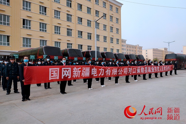 國網新疆電力有限公司對口策勒縣就業扶貧人員歡送儀式現場。薩妮婭 攝