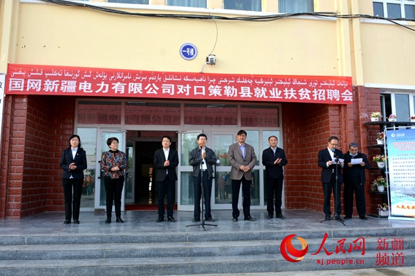 國網新疆電力有限公司對口策勒縣就業扶貧招聘會啟動儀式現場。薩妮婭 攝