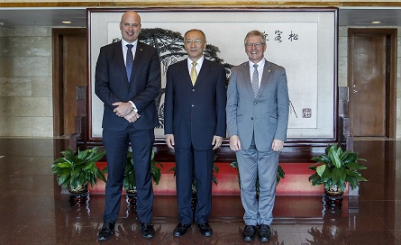 7月6日, 閻曉峰秘書(shū)長(zhǎng)在委內(nèi)會(huì)見(jiàn)了澳大利亞西澳州政府發(fā)展部、財(cái)政部、創(chuàng)新部長(zhǎng)邁米安先生、西澳州農(nóng)業(yè)與食品部、交通部長(zhǎng)丁那德先生。