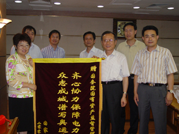 9月19日下午,受國資委主任李榮融委托,國資委副主任黃淑和聽取了國家電網公司副總經理陳月明關于國家電網抗震救災和奧運保電工作匯報,并對國家電網公司予以充分肯定和高度評價,對國家電網公司全體員工付出的辛勤努力表示真誠感謝。