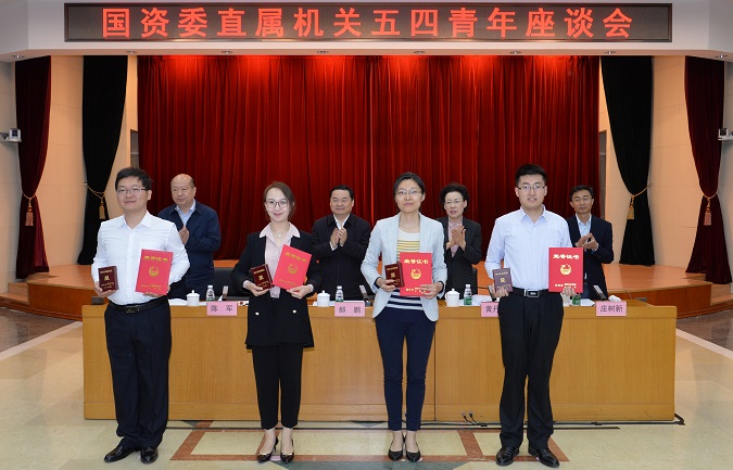 五四青年節(jié)前夕,國務(wù)院國資委黨委召開青年座談會,表彰委直屬機關(guān)青年五四獎?wù)拢?biāo)兵)。國資委黨委書記郝鵬出席座談會,向直屬機關(guān)青年同志致以節(jié)日的問候。國資委副主任、黨委委員黃丹華出席座談會,共同為獲獎青年代表頒獎。