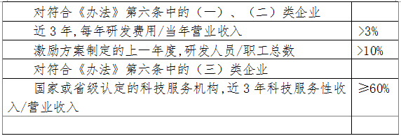 答:根據《辦法》第六條規定,企業應建立規范的內部財務管理制度和員工績效考核評價制度,年度財務會計報告經過中介機構依法審計,且激勵方案制定近3年未因財務、稅收等違法違規行為受到行政、刑事處罰。成立不滿3年的企業,以實際經營年限計算。近3年的財務指標要求如下: