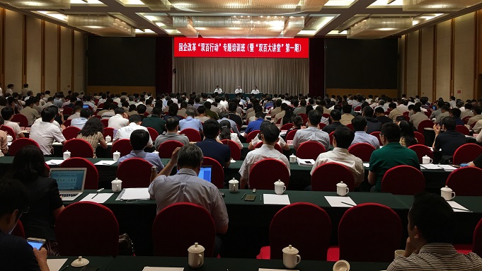 8月21-22日,由國務(wù)院國有企業(yè)改革領(lǐng)導(dǎo)小組辦公室舉辦的國企改革“雙百行動(dòng)”專題培訓(xùn)班(暨“雙百大講堂”第一期)在北京舉辦,納入國企改革“雙百行動(dòng)”的中央企業(yè)集團(tuán)公司及所屬“雙百企業(yè)”有關(guān)同志,共計(jì)320余人參加了培訓(xùn)。國務(wù)院國資委副秘書長彭華崗?fù)緟⒓娱_班式并作開班動(dòng)員。