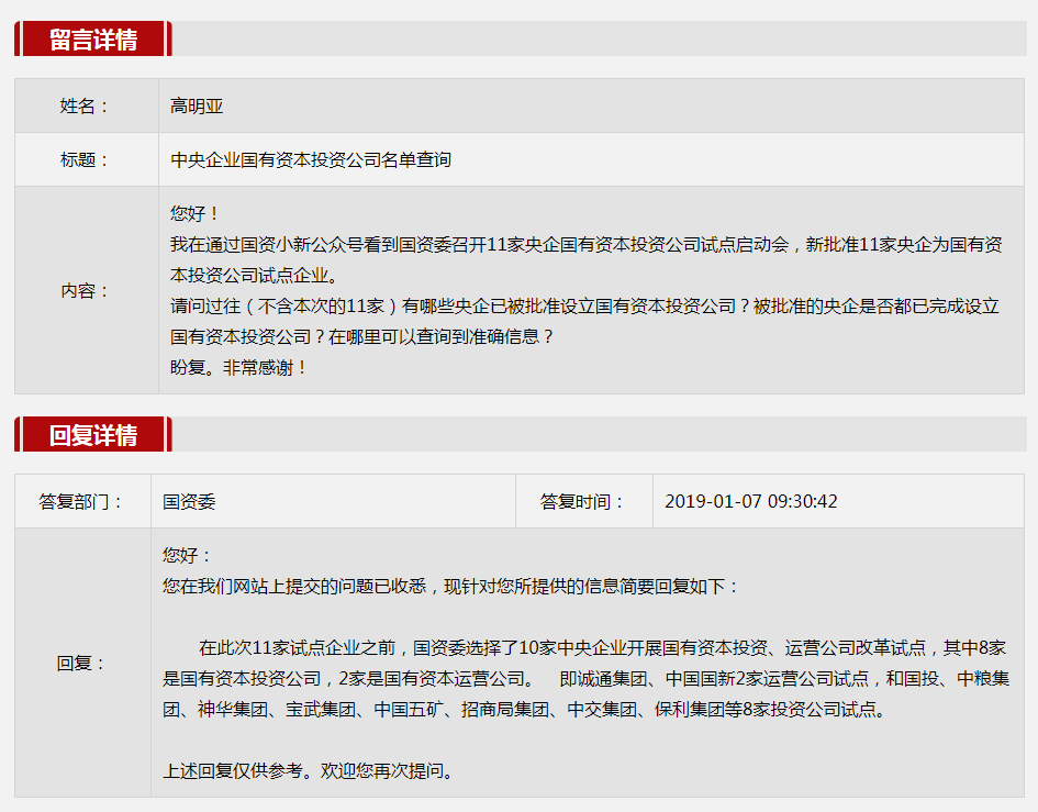 第一季度國資委網站政務咨詢欄目部分網友提出的咨詢,我們初步做出了認真的回應,現選擇五條關注度高、點擊量高的問題,再次推薦分享。這里有你關心的話題,快來看看廣大網友用鍵盤推出的熱門話題吧。