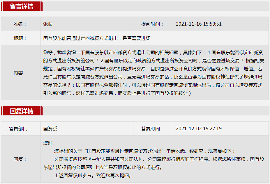 1.國(guó)有股東能否通過(guò)定向減資方式退出,是否需要進(jìn)場(chǎng)