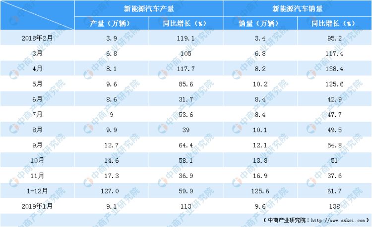在汽車市場整體下行的情況下,今年1月份新能源汽車產銷同比增長均超過百分之百。