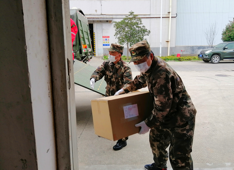 24日,運輸分隊再次受領任務,將內蒙古自治區捐贈的40余噸肉類生活物資分配到雷神山醫院,用于保障醫護人員的生活。此外,他們還將人福醫藥湖北有限公司物流中心80萬只口罩、370套防護服轉運至江夏區倉庫,用于社區防疫。
