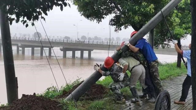 在江西上饒,7月1日早上6時38分,德興市花橋西園小區——富家塢銅礦、白茅港光纜中斷,4個基站掉站,中國聯通維護隊員立即奔赴現場。奔涌的南溪河洪水沖斷了通信光纜,斷點位于河中央,網絡部黨員突擊隊在河兩端拉起繩索,面對腳下湍急的洪流,將身體懸掛在繩索上開展施工作業。15時58分,在黨員突擊隊的不懈努力下,光纜搶通,網絡性能指標、基站通信恢復正常。在隨時可能滑坡的山路上,在狂風暴雨深水中,在洶涌的洪水畔……他們勇往直前,尋找網絡斷點,熔接光纜,聯通生命線。