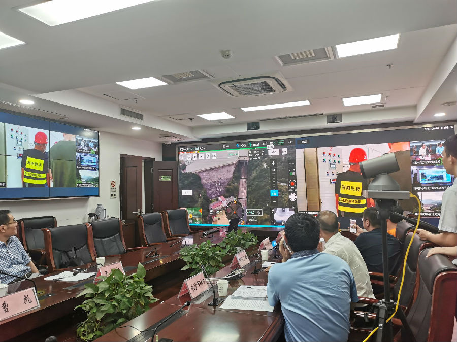 “無人機準備升空!”隨著湖南長沙市防汛抗旱指揮部發出指令,寧鄉黃材水庫演習現場的三臺聯通無人機搭載視頻、紅外、激光雷達、多光譜、拋投、喊話、照明等設備,攜帶監控及任務載荷模塊起飛,靈活地在水庫上方及周邊穿梭。無人機上升至百米高空,對水庫進行全面觀測,整個過程可進行錄像和拍照,隨時根據后方指令調整飛行方向,并利用云視頻會議系統將畫面實時回傳至指揮大廳。