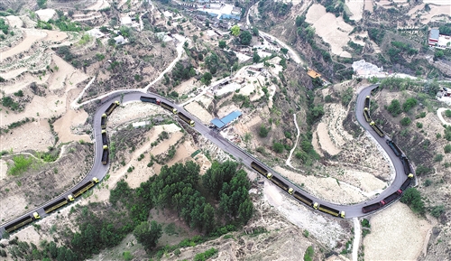 6月16日,在中國(guó)中鐵援建的保德幸福大道上,運(yùn)煤車有序行駛。