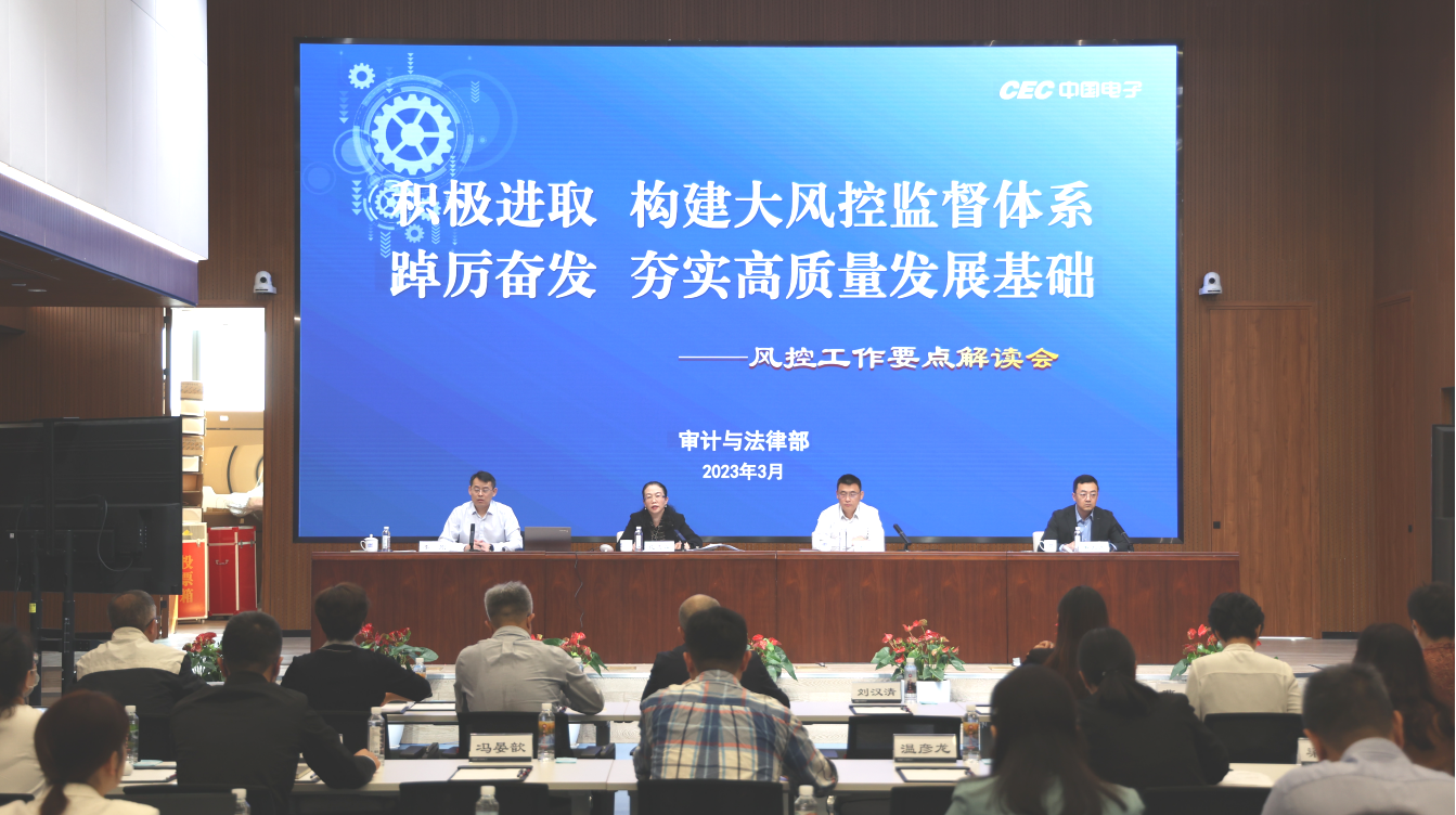 近日,中國電子信息產(chǎn)業(yè)集團有限公司組織召開2023年度法治建設(shè)與風(fēng)控工作要點解讀會,以黨的二十大精神為指引,傳達落實國資委中央企業(yè)深化法治建設(shè)加強合規(guī)管理工作會議精神,結(jié)合集團2023年工作會精神,回顧上一階段法治與風(fēng)控工作成果,剖析現(xiàn)存不足和突出問題,研判當(dāng)前新形勢新挑戰(zhàn),系統(tǒng)部署2023年度重點工作任務(wù)。集團副總法律顧問、審計與法律部主任主持會議。