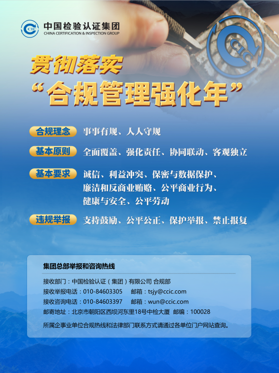 2022年,中國中檢積極貫徹落實國資委“合規管理強化年”各項部署,組織開展“合規管理強化年”及經營業務合規管理問題專項治理工作,持續完善合規運行和保障機制,在集團系統營造合規文化氛圍,合規管理取得顯著成效。