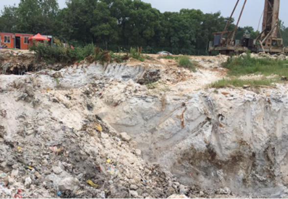 2017年7月,我局直屬湖北煤炭地質(zhì)局受業(yè)主方武漢市環(huán)投集團(tuán)委托,配合中國科學(xué)院武漢巖土力學(xué)研究所對(duì)場地內(nèi)白泥分布及內(nèi)含物進(jìn)行了勘察、檢測,提出了原位固化處理的技術(shù)方案,由武漢力學(xué)研究所配置成功Ⅰ型、Ⅱ型、Ⅲ型三類藥劑,湖北煤炭地質(zhì)局提出了深層攪拌工藝、后注漿工藝、封底及覆蓋等施工工藝,該方案通過有關(guān)專家評(píng)審。