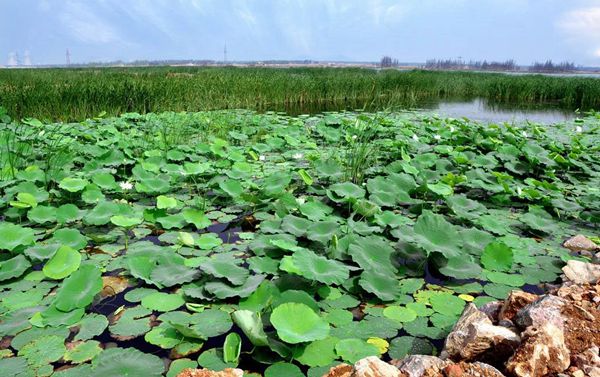 配合地方政府,利用采煤塌陷地建設的4A級旅游景區潘安湖濕地公園。